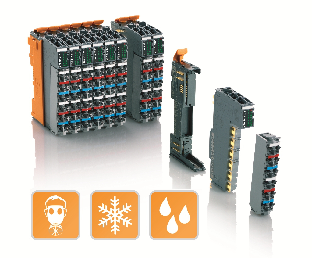 Além dos produtos com proteção IP20, também está disponível uma versão revestida do sistema que pode suportar até 100% de umidade e gases corrosivos, assim como o sistema X67 para aplicações que requerem proteção IP67.