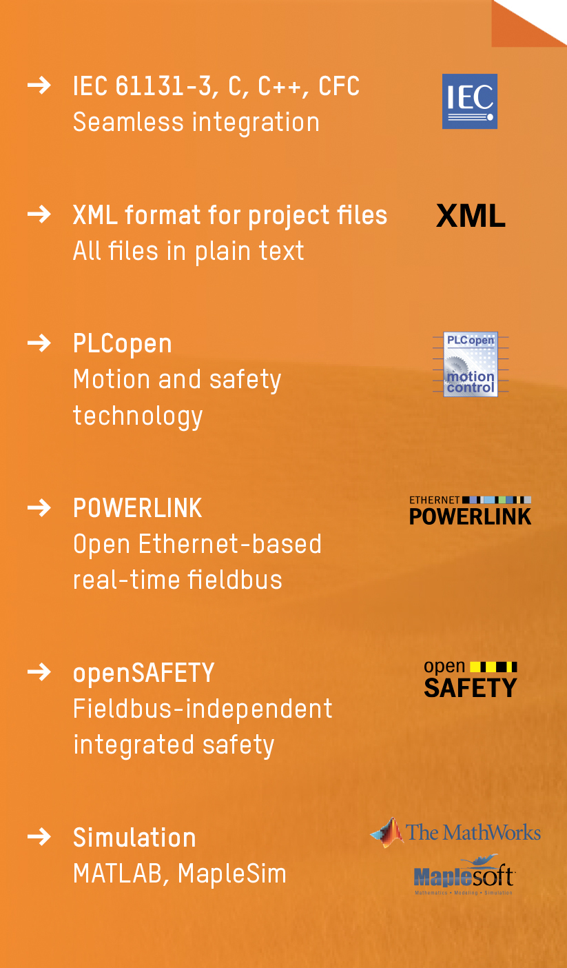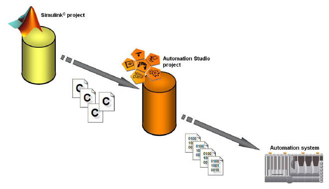 Algoritmos e malhas de controle desenvolvidos em ferramentas especializadas podem ser implementados de forma muito rápida e precisa em programas de controle com geração automática de código. A B&R oferece uma série de interfaces certificadas, por exemplo para MATLAB/Simulink ou MapleSim.