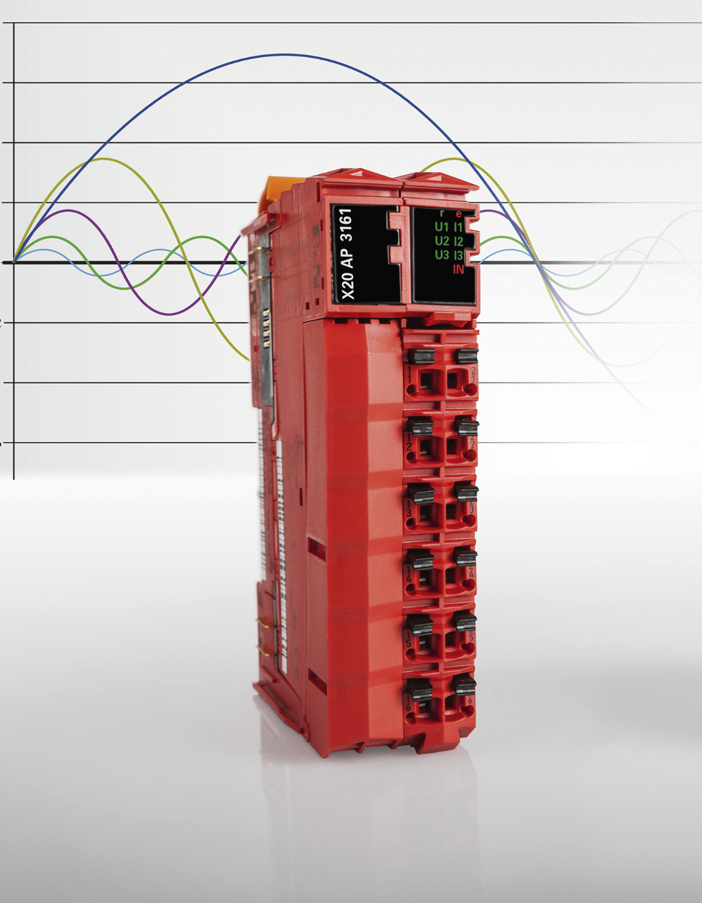 Módulos de medição de energia X20AP para transformadores de corrente com 5 A, 1 A, 20 mA ou 333 mV para potência ativa, potência reativa e potência aparente; registrar sequências de fases, fases individuais e valores cumulativos; corrente sobre linha neutra; frequência de gravação e harmônicos (até 31º harmônico)