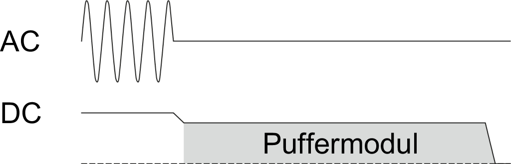 Após uma falha de energia ou desligamento, o módulo de buffer fornece a corrente de carga por um período de tempo especificado e relata a perda via terminais de sinais. Dados de processo podem ser salvos e processos podem ser terminados, antes que a tensão DC seja desligada. Reinicialização controlada é então possível.