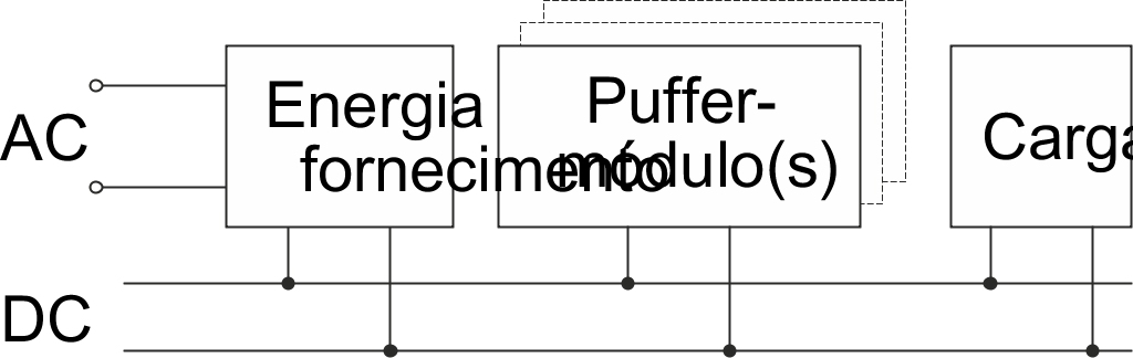 O módulo de buffer é um acessório para regulação de fontes de alimentação 24 Vdc. A energia de um circuito DC é armazenada em capacitores, e então é usada em caso de um evento de falha de energia ou quando é necessário lidar com sobrecargas. Máquinas e sistemas podem ser facilmente equipados com o módulo de buffer para uso mundial em circuitos de energia instáveis. Tempos de buffer menores que 4 segundos fazem deste uma alternativa ideal a DC UPS (custo eficaz, menor espaço requerido, livre de manutenção). Quando curtas correntes de pico ocorrem, o módulo fornece a energia necessária e, portanto, previne de outra forma a comum tarefa de sobre-dimensionamento da fonte de alimentação.