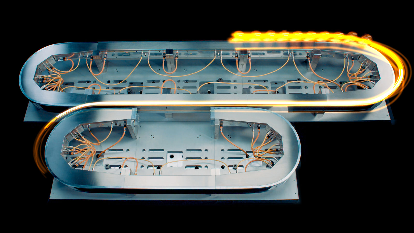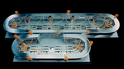 ACOPOStrak é uma revolução em manufatura adaptativa. Esse sistema de transporte altamente flexível estende a economia da produção em massa para lotes unitários. Peças e produtos são transportados de forma rápida e flexível entre estações de processamento em transportadores controlados independentemente.