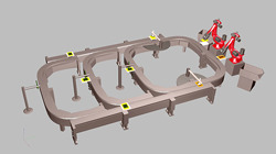 O fluxo do produto pode ser dividido, passar por várias estações de processamento e em seguida, fundir-se mais à abaixo na linha. Os processos com tempos críticos são acelerados, os tempos de ciclo são reduzidos e a produtividade é aumentada.