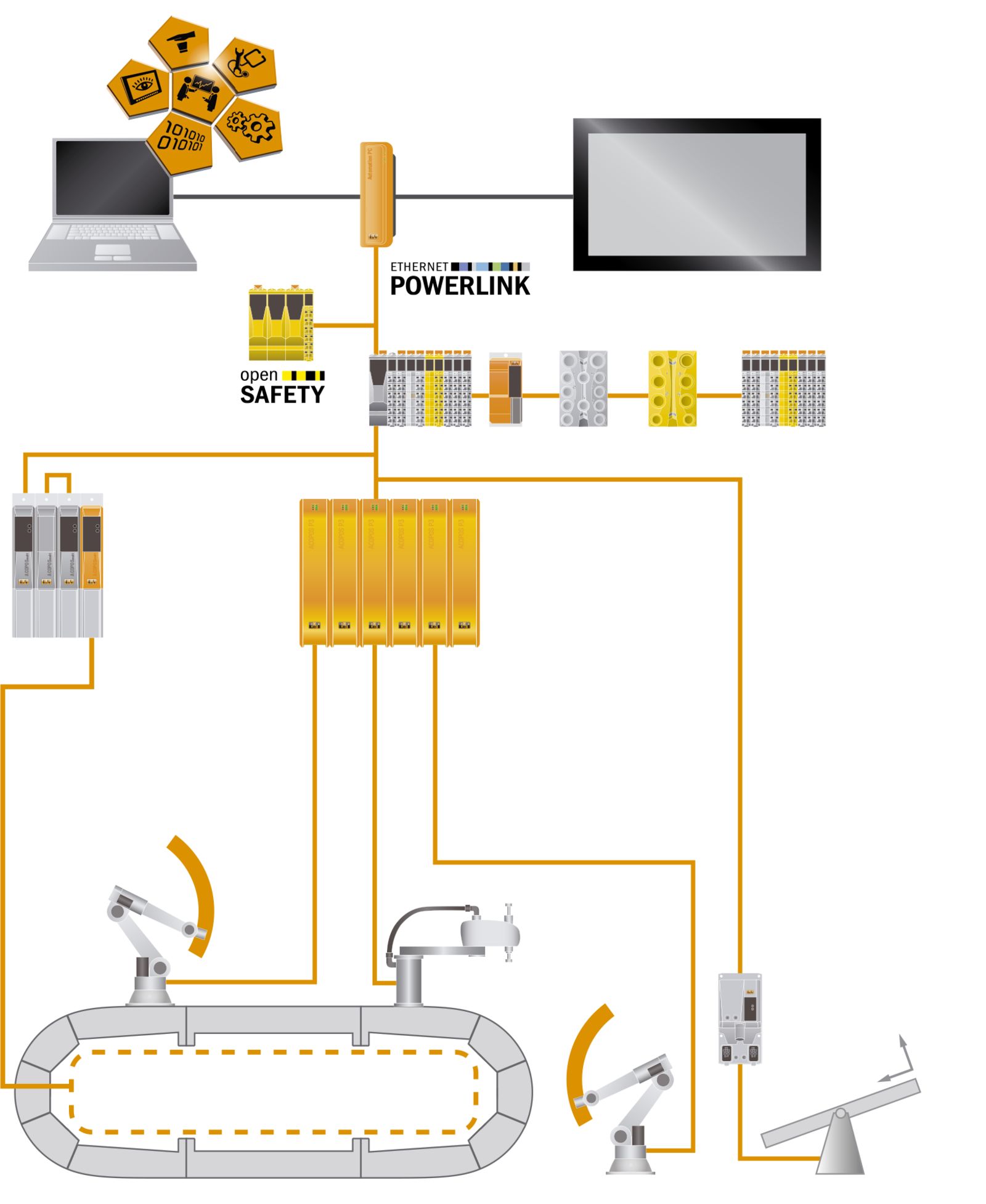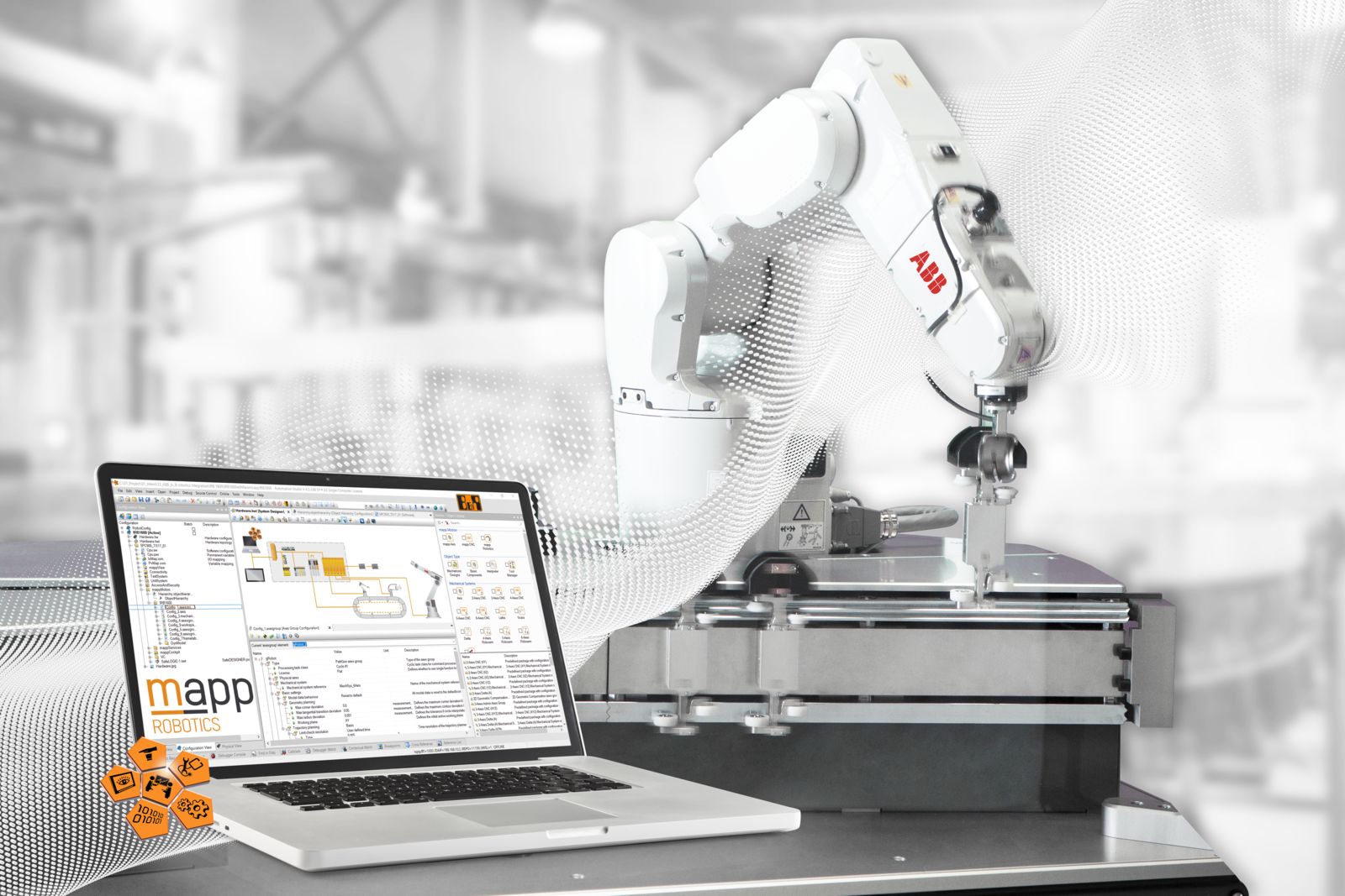 Para facilitar ainda mais a integração de robôs da ABB em soluções de automação de máquina, a B&R também provém softwares de módulo pré-configurados que fazem a criação de aplicações robóticas ainda mais fácil para os fabricantes de máquina. O mapp Robotics da B&R inclui funções padrão para o controle e comissionamento, assim como funções avançadas como controle feed-foward, compressores e monitoramento da área de trabalho. Isso permite que usuários implementem aplicações complexas e altamente dinâmicas sem precisar escrever incontáveis linhas de códigos. Tempos de desenvolvimento são reduzidos drasticamente.