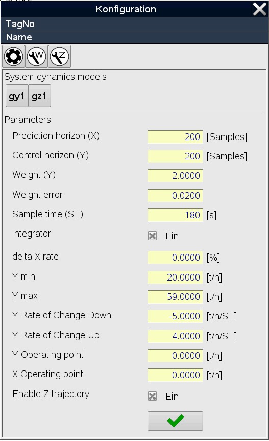 Управление по прогнозной модели (MPC) представилось прекрасным решением. MPC вычисляет воздействие скорости входного потока на будущее состояние производства на основе динамической модели процесса с дискретным временем. Здесь используются знания операторов установки для расчета оптимальной скорости потока на входе, также учитывая вводимые ограничения, такие как максимально допустимые разгон и торможение потока. Алгоритм управления цикличен, что дает возможность учесть любые изменения фактических значений.