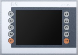 Power Panel PP45 5.7" QVGA color LC display with touch screen (resistive), 10 touch-keys, 64 MB DRAM, 48 kB SRAM, CompactFlash slot, 1x ETH 10/100, 1x X2X Link, 2x USB, IP65 protection (from front), order program memory separately, order TB103 and TB704 terminal blocks separately.