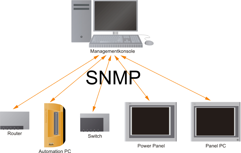 B&R ADI SNMP агент – это опциональный компонент Windows, который позволяет контролировать и настраивать промышленный ПК B&R через SNMP. Например, оператор на консоли управления SNMP (станция мониторинга) может контролировать значения температуры промышленного ПК B&R или изменять идентификационный номер пользователя.