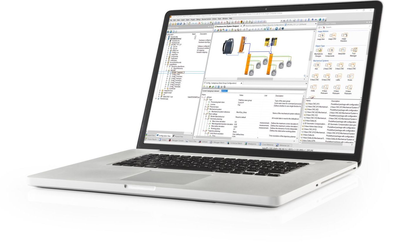 Решения B&R предлагают готовые к использованию приложения, которые существенно упрощают разработку функций для робототехники. mapp Robotics от B&R включает в себя стандартные функции для управления и ввода в эксплуатацию робототехники, а также продвинутые функции, такие как предиктивное управление, контроль компрессора и мониторинг рабочего пространства. Это позволит разработчикам реализовывать высокодинамические, сложные системы без необходимости писать бесчисленные строки кода.