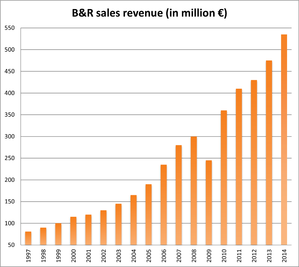 In the current year, B&R is expecting record sales revenue of €535 million, therefore surpassing the defined goal of a half-billion euros by a wide margin. This was announced by general manager Peter Gucher at B&R's annual press conference. With a 13% increase in sales, the company continues along the highly successful course laid out in previous years.