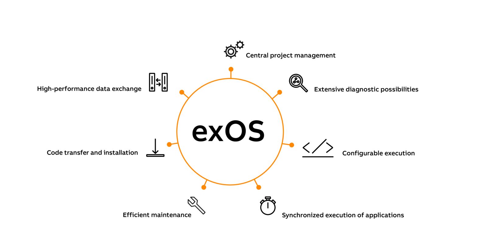 Features include uniform project management for Linux and real-time applications in Automation Studio as well as automatic transfer of Linux applications from Automation Studio to the controller and the Linux environment. exOS also includes a user-friendly API for high-performance data exchange. The API ensures easy, buffered process data communication between the controller operating system and Linux, consistently in the millisecond range.