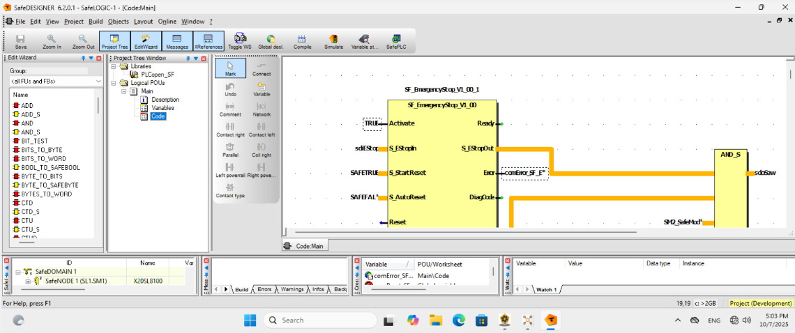 Safety logic is created and managed in the same engineering tool as standard automation.