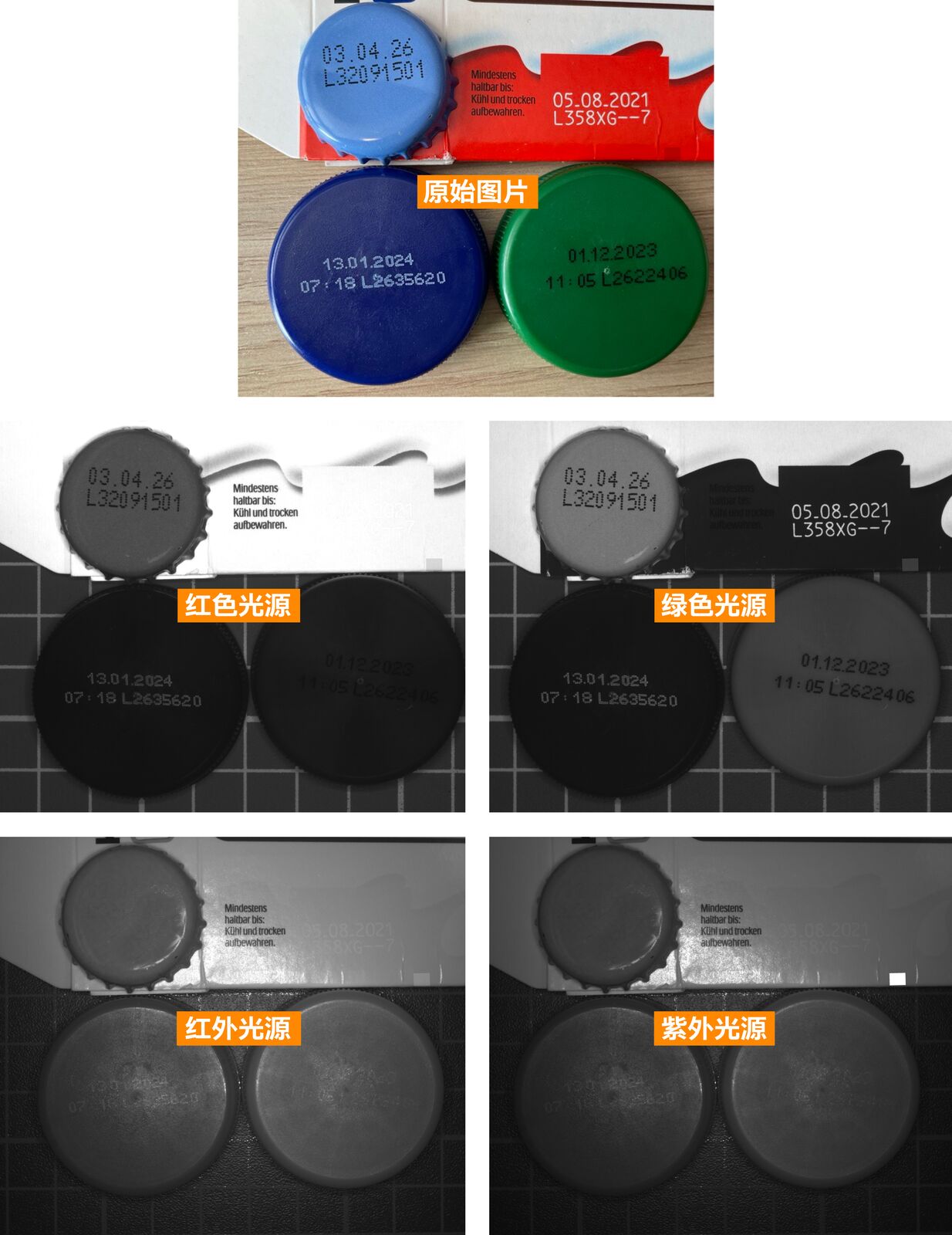 通过在不同应用中使用互补光源,可以实现最大限度的强度和对比度。同时,正确的色彩组合可最大限度缩短曝光时间并避免图像拖影。